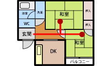 一般には、キッチン・浴室・トイレなどを共同で使い、居室・寝室は別々の造りになっている。